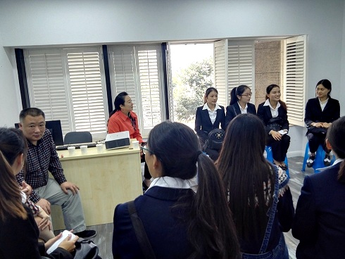2015年11月12日下午,万象城经济贸易系由朱贵水主任带队,市场营销专业张莉老师、唐瑛老师一行3人,前往成都高新西区全兴酒业进行产学项目的企业调研,与全兴酒业卢中明副总经理、王晖副总经理、蒋飞经理进行了会谈。