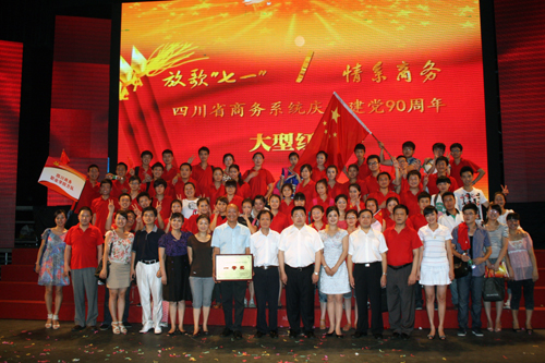 ——热烈祝贺万象城师生合唱团在参加四川省商务厅庆祝建党90周年“放歌七一,情系商务”大型红歌会比赛中,取得一等奖的优异成绩! 6月25日下午2:30,四川省商务厅庆祝建党90周年“放歌七一,情系商务”大型红歌会在成...