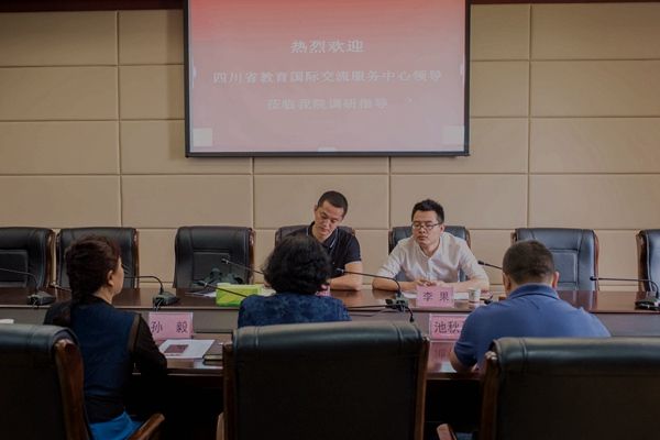 许丹雅同志代表学院就以下三个方面进行了汇报:万象城近几年国际合作交流的基本情况和经验;在推进教育对外交流工作过程中,急需解决的问题和需要省教育厅给予的政策和项目支持;如何充分发挥高校和地方的积极性,做好新时期教育对外开放工作的意见和建议。四川省教育国际交流服务中心的王拉沙同志和李果同志认真听取了许院长的汇报,并就学院发展的突出问题提出了建议。