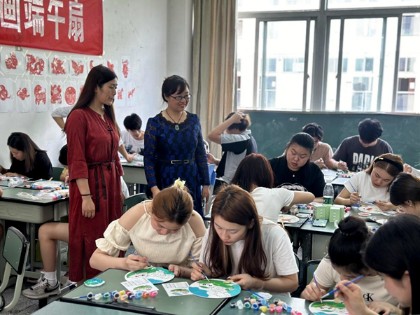 近日,经营管理系开展了“中老学生,共读屈原诗,共画端午扇”文化交流活动。经营管理系党总支书记杨洪、主任王琦、相关教师以及46名老挝留学生、15名中国学生代表共同参与此次活动。