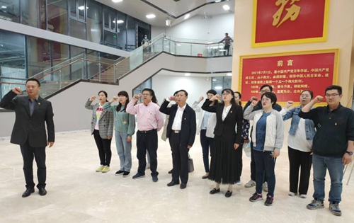 在中流砥柱馆,通过大量的图片和文物,党员们详细了解了中国共产党及其领导下的军队,领导和推动抗日战争,浴血奋战于抗战最前线,成为全民族团结抗战中流砥柱的光辉历史。