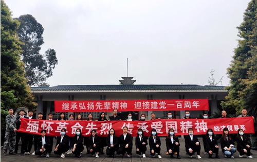 在伟大的中国共产党建党百年、学院深入开展党史学习教育之际,为弘扬红色精神,4月6日,经济贸易系党总支委员、学生党支部全体党员、在校复学退伍军人、团总支学生代表在温江区烈士陵园组织“缅怀革命先烈 传承爱国精神”主题教育党团共建活动。