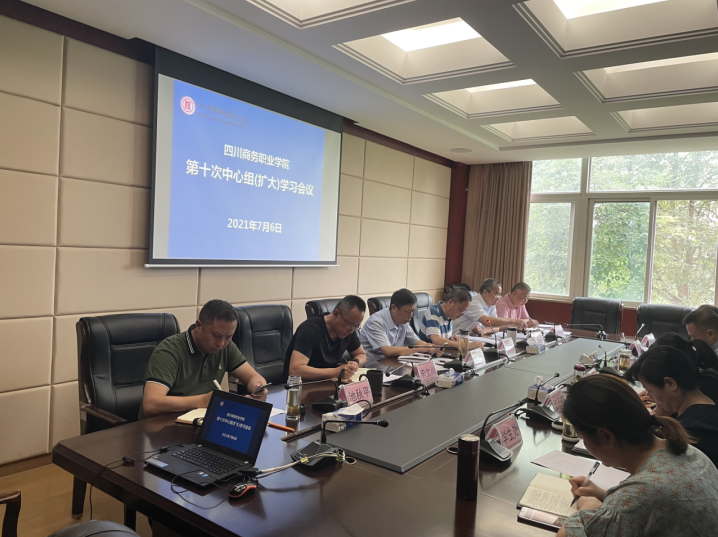 2021年7月6日,万象城awcsport官网召开第十次中心组学习会,学院院级领导、科级以上干部参加了会议,会议由党委书记唐柯主持。