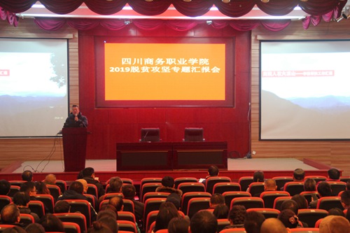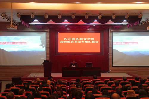 根据学院开展“不忘初心、牢记使命”主题教育工作安排, 11月26日,由学院下派扶贫干部凉山州金阳县红联乡卢家营盘村第一书记——李樵同志以“商院人在大凉山”为题,作脱贫攻坚工作专题报告。报告会由官培生副院长主持, 全体党员、科级及以上非党员领导干部近300人参加。