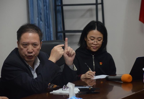 其后,学生代表发言,现场气氛热烈。他们手握着沉甸甸的发言稿,或是自己的经历,或是从同学中收集整理的素材,侃侃而谈,情真意切。经贸系商英专业的高必城同学以榜样力量“黄大年的事迹”为我们阐释了他对党的认识;实习归来的大三学长黄帮俊以自己的实习经验告诉大一、大二同学,学习和提升个人修养的重要性;新入校的大一新生赵臻给我们分享了他的爷爷和自己与党组织之间的故事;院学生会主席团成员李静在会上分享了自己对“不忘初心跟党走,牢记使命献青春”的三点认识……针对同学们的发言,官培生同志和相关教师认真倾听、详细记录,并对同学们的疑惑进行了现场解答。
