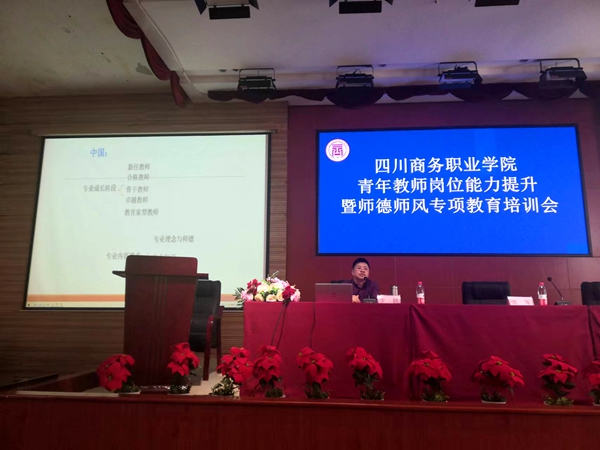 为加强师德师风建设,提升青年教师教育教学水平,人事处开展青年教师岗位能力提升暨师德师风专项教育培训。培训设有教师教育教学能力提升和师德师风建设两个专题,分两次进行。4月18日,开展了第一场专题培训。学院党委副书记张军出席,人事处副处长李刚主持,近两年新进教师及35岁以下专兼职教师约100余人参加了此次培训。