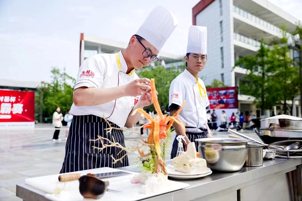 经过近2小时的精心烹制和激烈角逐,教师组穆然荣获金奖;游丽莎、张茂玻获得银奖;杨红芬、李亚君、唐艳青获得铜奖。学生组由2021级和2022级烹饪专业学生中通过初赛选拔出来的16名选手组成,评委根据菜肴的口味、质地、色泽、造型、营养卫生、时间控制等6个方面综合打分。最终,张鹏、沙马土哈、陈鑫获得指定菜品宫保鸡丁项目金奖,陈科宇获得自选菜项目最佳滋味奖、最佳造型奖,张鹏等2人获得银奖;赵海等3人获得铜奖,其余选手获得优秀奖。