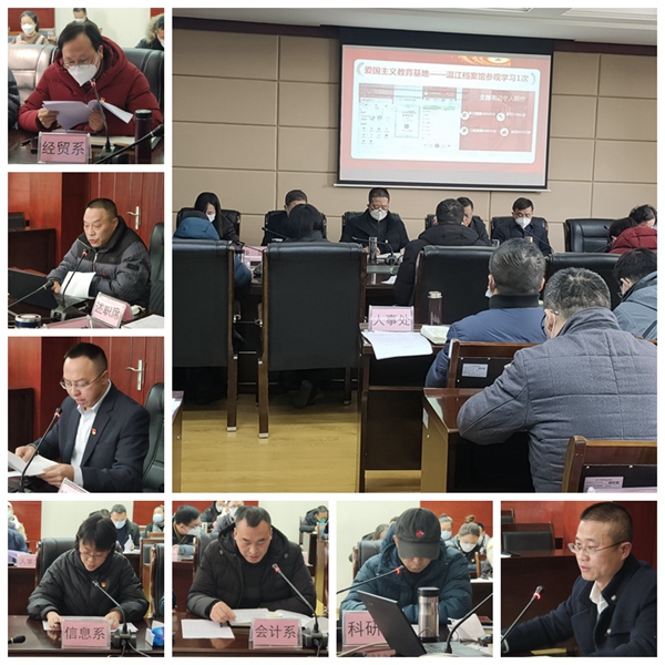 经济贸易系总支、经营管理系总支、旅游管理系总支、信息技术系总支、会计系总支、设计艺术系总支、科研和国合中心支部、实训中心支部等8位书记围绕思想建设、组织建设、落实基层党建责任制、上年度述职评议考核整改清单落实情况、“三全育人”工作推进落实情况作了汇报。全体参会人员对现场述职和书面述职的书记进行党建工作评议和测评。