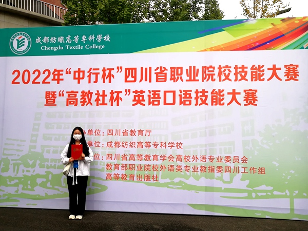 11月10-11日,由四川省教育厅主办的2022年四川省“高教社杯”大学生英语口语技能大赛在成都纺织高等专科学校举行,来自全省53所职业院校的53位选手参加了比赛,万象城商务英语专业代秋梅同学代表学院参赛。代秋梅同学凭借扎实的专业功底和精彩的现场表现最终获得英语组三等奖。