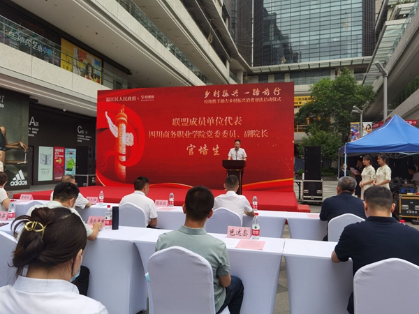 学院党委委员、副院长官培生出席开幕式,代表四川省职业院校乡村振兴帮扶协作联盟筹备组发言。官培生表示,今年是实施“十四五”规划承上启下之年,也是全面推进乡村振兴的关键之年。举办本次展销会的意义,就在于深入贯彻习近平总书记关于做好巩固拓展脱贫攻坚成果同乡村振兴有效衔接的系列讲话精神,落实省委、省政府有关乡村振兴和消费帮扶指导文件的要求。各举办单位发挥自身力量,整合自身优势资源,依托教育系统“e帮扶”工作平台,促进脱贫地区农副产品线上线下销售,推进农副产品进校园进社区,助力脱贫地区实现产业振兴。