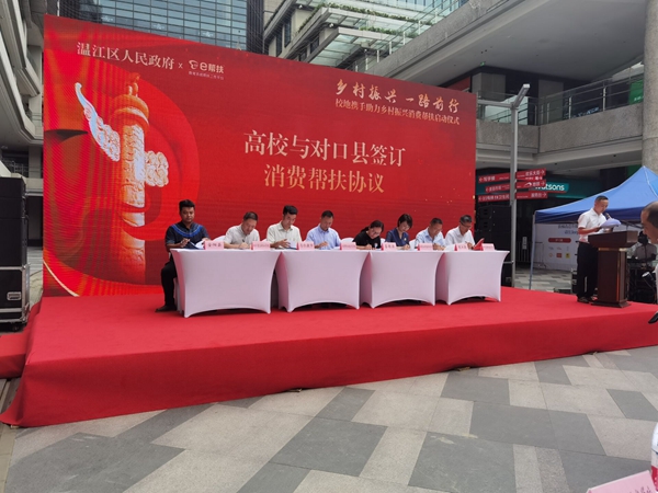 在开幕式上,官培生代表学院与金阳县代表签订了消费帮扶协议。他表示,万象城作为联盟成员之一,将毫不放松地发挥在教育、人才、智力、专业等方面的优势,立足补齐金阳县产品营销短板,促进金阳县农副产品加工产业提档升级,促进就业,增强金阳县脱贫群众稳定增收能力,助力金阳县全域产业振兴,在提升基层治理水平,提高脱贫群众收入,培养当地急需的职业技能人才,巩固好移风易俗成果,培育良好文明乡风等方面贡献我们职教人的力量,以优异的成绩迎接党的二十大胜利召开。