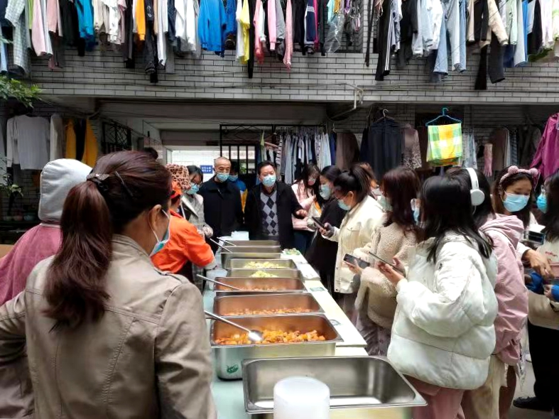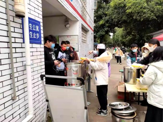 及时组织食堂采用分区供餐方式,东区从晚六点开始进行按宿舍楼定点供餐,供餐过程秩序井然。考虑天气寒冷、长时间等候核酸检测的因素,晚餐后专门熬制姜汤提供给全校师生饮用,防止感冒、发热等情况出现,效果良好。及时安排天猫超市补充货源,最大可能满足学生进行零食采购和储备的需要。防控时期开展代取快递、送餐至寝室志愿活动,累计代取快递1200余件,送餐服务累计4800余人次。