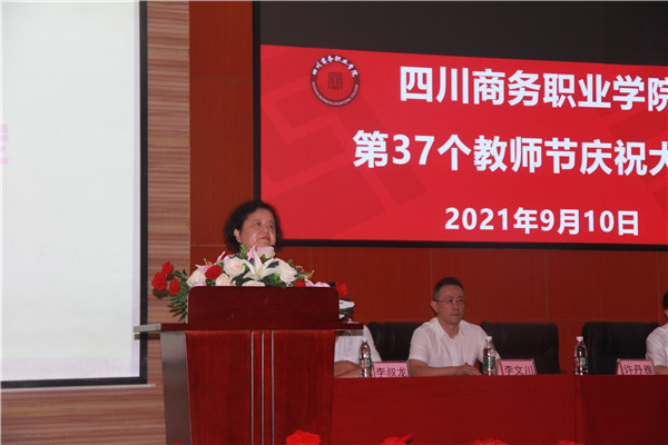 大会在庄严的国歌声中拉开帷幕。学院党委委员、副院长许丹雅宣读了学院表彰决定,学院领导分别为教学名师、优秀青年教师、优秀辅导员、师德标兵、优秀教育工作者、优秀外聘教师及光荣从教30年教职工代表颁奖。