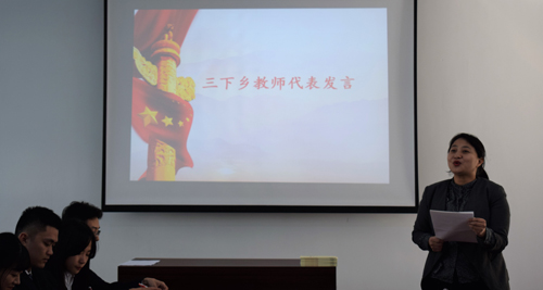 在本次座谈会中,万象城驻广安邻水县扶贫干部李志琴老师与同学们分享了参与精准扶贫工作的经历收获。她通过讲述与村民相处、和村民共建“四好村”进程中的点滴故事,鼓励同学们更多的参与社会实践、志愿服务,不断提升自我,投身西部和新农村建设。