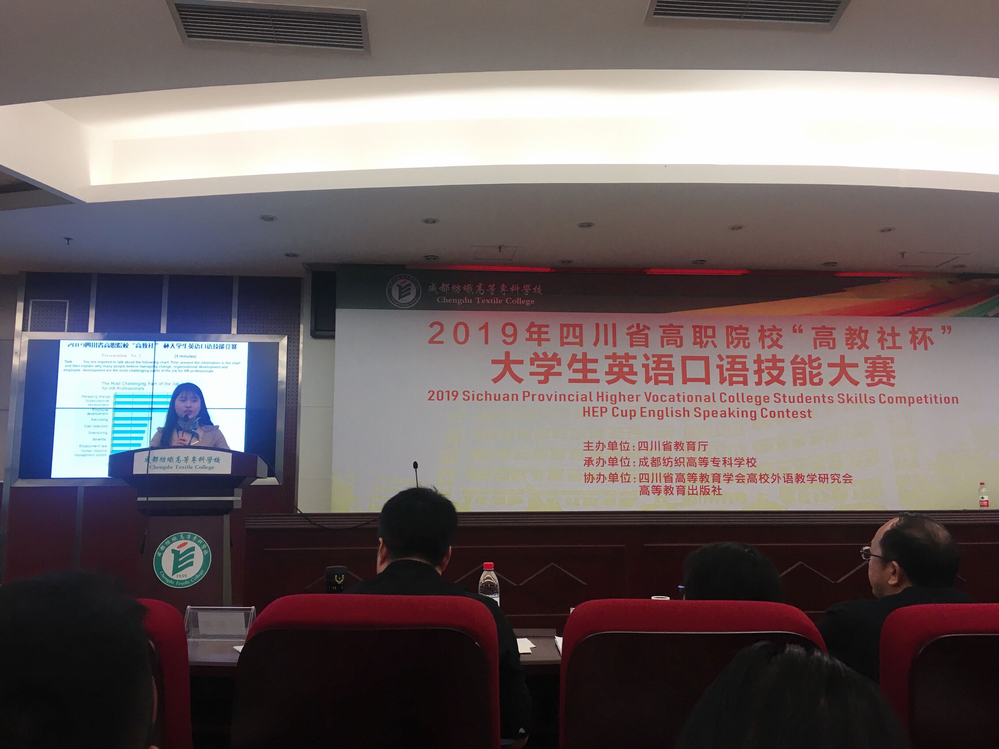 本届大赛由四川省教育厅主办,成都纺织高等专科学校承办、四川省高等教育学会高校外语教学研究专业委员会、高等教育出版社协办,总共62所省内高等院校参赛。比赛分英语专业组、非英语专业组,两组学生同时比赛,分别评奖。