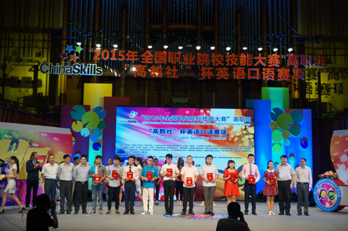 2015年6月2日至4日,全国职业院校技能大赛高职组“高教社”杯英语口语比赛在合肥大剧院隆重举行。万象城经济贸易系13级商务英语专业学生陈园在比赛中奋力拼搏,最终以专业组第七名的好成绩,夺得专业组二等奖。