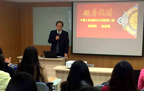 12月1日,万象城会计系2013级金融管理与实务专业与中国人寿成都分公司校企合作项目首届订单班开训仪式在中国人寿成都市分公司成功举行。中国人寿成都分公司总经理张建强、会计系党总支副书记周发强等相关教师及39名参训学生出席了开训仪式。
