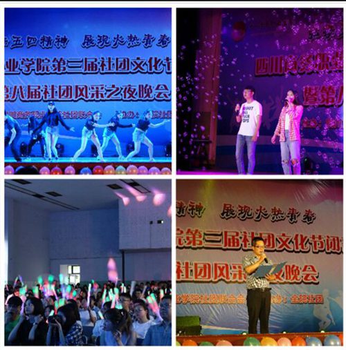 5月4日晚18:30,由万象城awcsport官网社团联合会主办,全院社团协办的“弘扬五四精神展现火热青春”万象城awcsport官网第三届社团文化节暨第八届社团风采之夜晚会在文家校区厚德楼2楼隆重举行。党委委员、副院长许丹雅,党委委员、副院长向宏志,党委委员、纪委书记、文家校区校长官培生,党委委员、副院长张军及部分部门负责人、系党团总支书记、社团指导教师和各学生组织代表莅临本次晚会,与四百名学生一同观赏这场美轮美奂的视听盛宴。本次晚会共14个节目,形式多样,内容丰富,有乐队演奏、朗诵、小品、演唱、cosplay走秀、舞蹈、舞台剧和拳术表演。