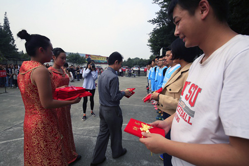 中午12点30,在庄严的国歌声中,文家校区篮球场上200余名师生齐聚一堂。学院党委书记舒维霖,中国联通青羊分公司集团经理卢黎明,学院党委委员、纪委书记、文家校区校长官培生,学院工会副主席丁德君,后勤处长、文家校区综合办主任彭枫、人文社科部副主任王伟,后勤处党总支副书记陈根元,以及相关系部负责人和全体辅导员老师们出席了开幕式。