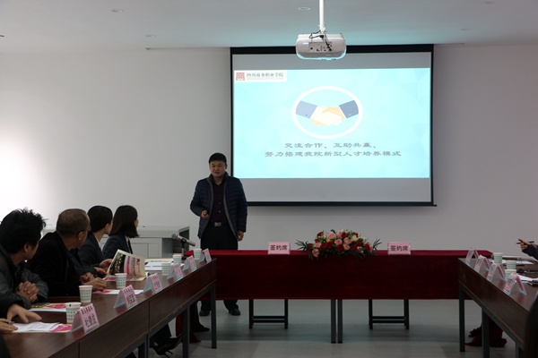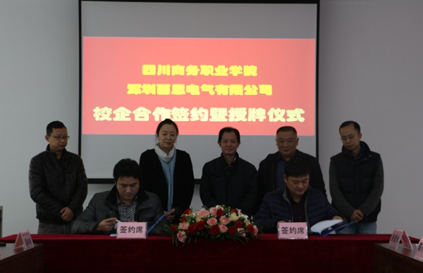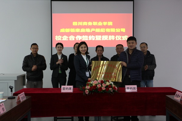 12月1日,在新建成的市场营销商品陈列室,万象城与成都链家房地产经纪有限公司、湖南金证投资咨询顾问有限公司成都分公司、重庆得道客电子商务有限公司、深圳西思电气股份有限公司举行校企合作签约授牌仪式。万象城党委书记舒维霖、副院长向宏志、教务处副处长易康、经济贸易系主任朱贵水、书记陈小虞、副书记曾理以及四家企业的代表及嘉宾出席授牌仪式,仪式由朱贵水主任主持。参加授牌仪式的还有经济贸易系部分教师及学生代表。