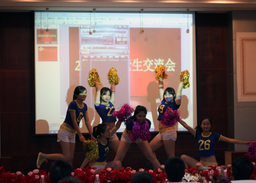 交流会在13级校园十佳歌手和14级新生的联袂演唱《你是我的眼》中拉开序幕。随后,由“我的梦,中国梦”一等奖获得者苏芸同学和各系优秀学生代表分别向新生们讲诉如何自己的学习经历,以及如何在大学快乐积极面对学业和生活的经验分享。今年的新老生交流会,把重点集中在互动问答环节。新老生就涉及如何处理好学习与社会实践、兼职的时间管理,如何获取所需专业证书,怎样努力才能成为一名优秀的大学生,怎样让自己的青春时光更有价值和意义等等进行交流。最后,伴着一段活力四射的啦啦操表演,交流会圆满结束。