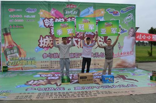 大冲关的赛道由疯狂大转盘、逆向跑道、勇闯独木桥、超级保龄球、勇闯克里姆林宫组成。活动当天,小雨丝丝挡不住同学们如火的参赛热情。在大冲关的赛道上,选手们身着格瓦斯赛服,在一声响亮的口号后,飞奔赛道。男生强悍,女生坚强。反反复复的角逐中,产生了大冲关的冠、亚、季军。活动一直持续到当天下午的五点,并取得圆满成功。