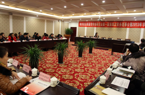 四川省高职高专学报研究会成立于2011年4月,旨在提高我省高职高专学报办刊质量和水平,促进办刊规范化和标准化。目前全省共有40多所高职高专加入理事会,四川职业技术学院是学报研究会理事长单位。会议期间,四川省高职高专学报研究会理事长、四川职业技术学院副院长、学报主编邱永成教授总结了2013年研究会工作,并部署了2014年工作。四川省高职高专学报研究会秘书长、四川职业技术学院学报常务副主编邓荣华教授做了研究会2013年度财务报告。