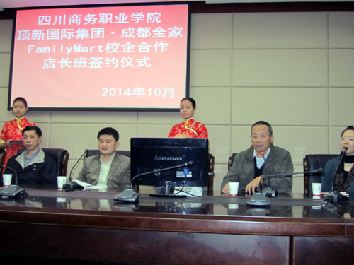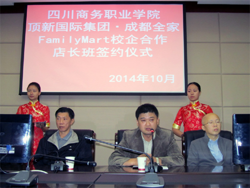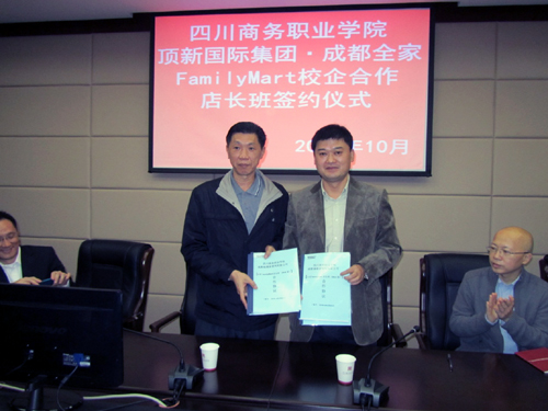 10月31上午,学院与成都福满家便利有限公司校企深度合作签字仪式在学院和盛校区二楼会议室举行,学院副院长向宏志同志与公司李健鹏总监签定了《万象城awcsport官网与成都福满家便利有限公司< 全家familymart店长班(2013级)>校企合作协议》、《万象城awcsport官网与成都福满家便利有限公司< 全家familymart店长班(2014级)>校企合作协议》。