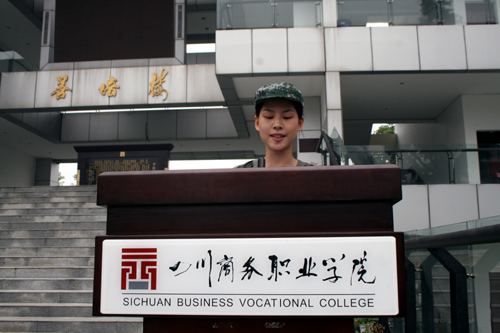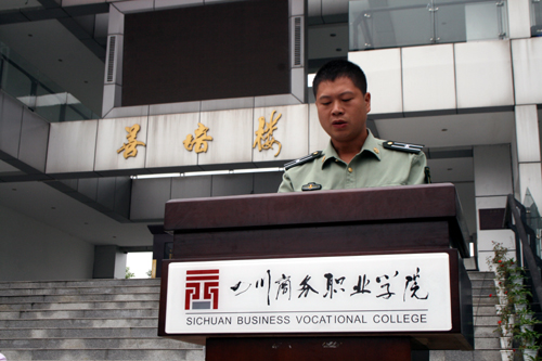 庄严的国歌声中,军训动员大会隆重开始。学院党委书记舒维霖代表学院向各位新同学表示热烈的欢迎,他希望2014级的新生秉承万象城“学无涯,商有道”的商道文化精神,勇于接受任何挑战,坚决服从教官的安排,发扬革命前辈吃苦耐劳的精神。会上四川省学生军事训练基地龙泉驿区人民武装部分基地陈道洪同志、唐运同志代表参训基地教官对军训做了具体要求,军训教官和参训学员代表也做了精彩发言。在嘹亮的军歌声中,学院院长高力平为军训团授旗,代表了军训团的成立,军训正式开始。