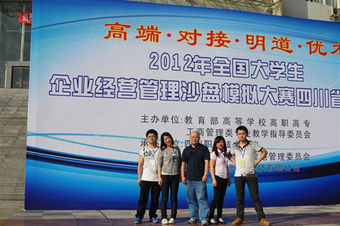 2012年6月7日,由教育部高职高专工商管理类专业教学指导委员会主办的“2012年全国大学生全程电子商务沙盘模拟经营大赛”四川省赛在四川职业技术学院隆重举行。四川职业技术学院、四川工程职业技术学院、南充职业技术学院等6所高职高专院校共7支队伍参加了此次沙盘大赛。万象城代表队发扬了吃苦耐劳、团结协作的精神,表现突出,获得四川省赛二等奖的好成绩。