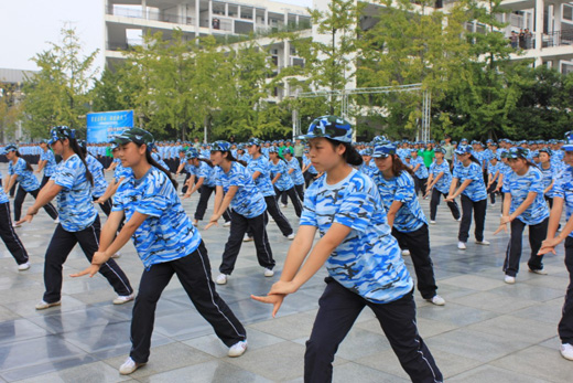 军训汇报表演在雄壮的国歌声中开始。首先进行隆重热烈的阅兵式。在迎接军旗仪式后,学院党委书记舒维霖同志检阅了军训方队。伴随着军乐声,2300余名军训新生组成的24个方阵依次经过主席台进行分列式表演,4个表演连队分别进行了男子军体拳;队列表演;女子捕俘拳及字体操的汇报表演。一张张青春的面孔,一阵阵坚定的步伐,一声声震天的口号,充分展示了15天军训带给他们的成长与感动,也展现了百年商院学子良好的精神风貌。而伴随着新生感人至深的手语歌“感恩的心”的美妙歌声,队列徐徐拉开,组成“商道”二字,更是把整个检阅仪式推向了另一个高潮,也道出了商院的精髓所在。