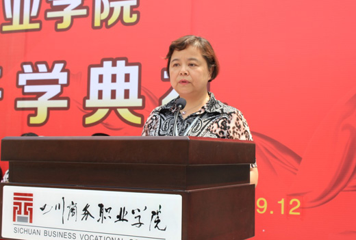 会上学院 “教学名师”张莉代表教师作迎新发言,旅游管理系任珂和经营管理系赵爽分别代表老生、新生发言。
