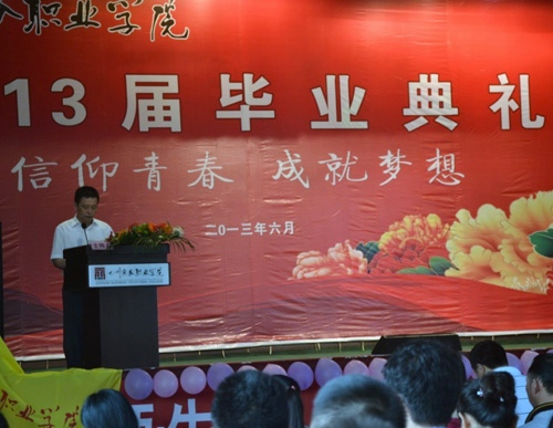 6月26日上午,万象城2013届毕业典礼在和盛、文家两个校区同时举行。学院领导,各系部、各部门负责人,校友、家长、教师代表、辅导员老师、毕业生、在校生代表等参加了毕业典礼。副院长郎松亭和文家校区校长官培生分别主持了和盛、文家校区的毕业典礼。