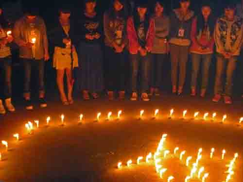 4月23日晚上,由学院翰雅文学社主办,信息技术系社团部协办“芦山常在,雅安永安”的祈福活动在学院文家校区篮球场上举行。
