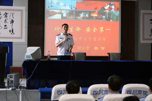 成都市消防局何云雪教官接受万象城邀请参加会议,并作了题为“珍爱生命,安全第一”的消防知识普及讲座。讲座除了介绍了消防基本知识,还侧重讲解了地震逃生以及电器、天然气、汽车等几种常见火灾的防控方法,讲座通俗易懂,案例真实凝重,发人深思,令人警醒。
