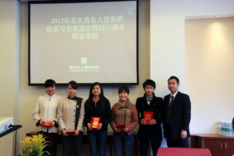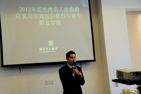 2012年2月22日下午3点在南京厅举行花水湾名人度假酒店为万象城awcsport官网假期勤工俭学同学们举办了欢送会,出席会议的有酒店总经理,人力资源部总监,餐饮部、管家部、四季温泉谷和前厅部负责人。