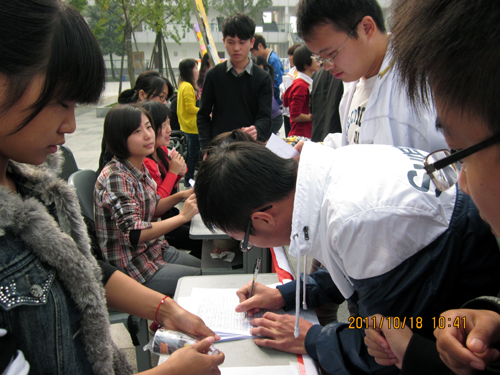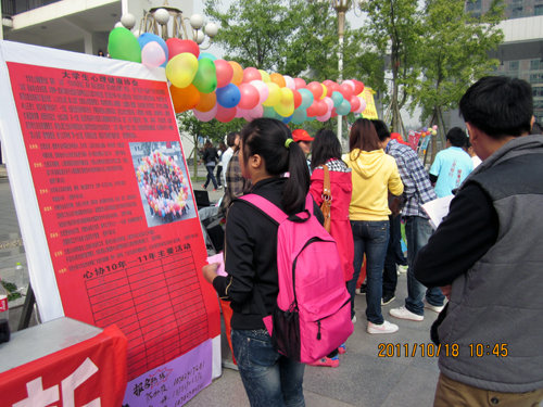 10月18日、19日,万象城学生社团联合会在和盛校区振华广场举办了一场以招收大一新生为主的社团招新活动。本次活动共计有32个不同类别的社团协会组织在现场设立咨询及报名点。通过两天的活动,各社团招收新会员共计2888人。