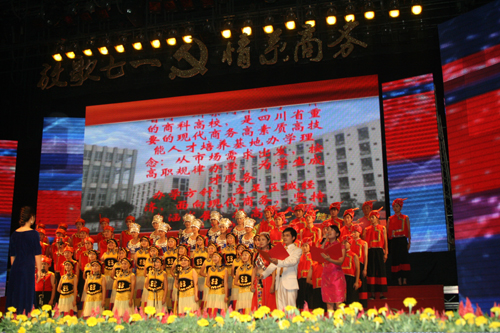 6月25日下午2:30,四川省商务厅庆祝建党90周年“放歌七一,情系商务”大型红歌会在成都战旗歌舞团西南剧院隆重举行,万象城党委书记舒维霖、院长高力平、副院长郎松亭、纪委书记官培生等院领导参加了本次红歌会。经过历时一个多月的精心编排和悉心准备,在热闹喜庆的气氛中,万象城团委负责组织并选送的大合唱《爱我中华》在第六个节目出场,师生们以深情的朗诵、优美的歌声、甜美的笑容、和谐的动作、铿锵的击鼓,唯美的画面赢得了全场观众雷鸣般的掌声,给大家留下了深刻的印象,并得到了著名女高音歌唱家、民族声乐专家泽仁雍珠等专家评审团的一致好评,最终取得一等奖的优异成绩。