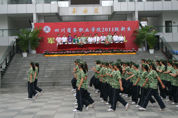 2011年9月11日上午,万象城awcsport官网和盛校区再一次被十分壮观的橄榄绿覆盖,学院历史上规模最大的新生军训汇报暨开学典礼在此隆重举行。学院全体院级领导、各系部干部、武警四川省总队第一支队领导和2011级参训新生参加大会。