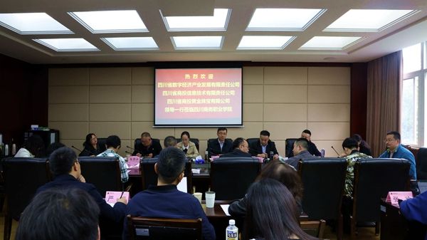 10月31日下午,四川省数字经济产业发展有限责任公司党委书记、董事长罗成明、四川省商投信息技术有限责任公司总经理马一茗、四川省商投黄金珠宝有限公司总经理陶琬等一行来访、座谈,学院党委副书记、院长高司华、副院长康璐参加接待,经济贸易系、信息技术系、经营管理系、质量办公室相关人员参加了座谈会。