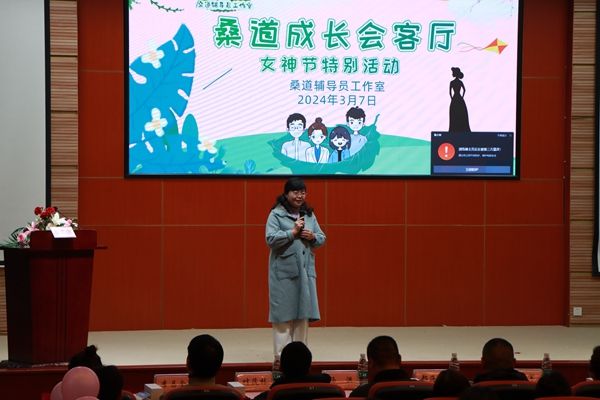 3月7日晚,桑道辅导员工作室于商务信息交流中心开展了一场名为“桑道成长会客厅”的女生节主题活动,主讲人为电子科技大学心理咨询中心徐美勤副教授。学院党委委员、副院长王军、相关系部负责人以及和盛三系三百名女生参加了此次活动。
