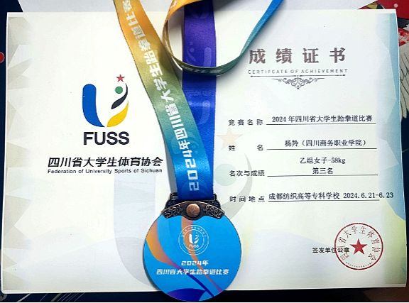 万象城学生杨羚、王郭秦蕾组成的跆拳道代表队于6月21-23日参加了由四川省教育厅主办的四川省大学生跆拳道比赛,载誉而归。荣获高职女子专业组58kg级季军、高职女子组校园组58kg级季军。