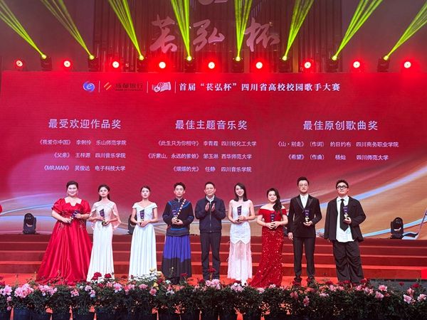 10月23日,由四川省教育厅主办的首届“苌弘杯”四川省高校校园歌手大赛暨“我和我的祖国”主题音乐展演活动在成都城市音乐厅举行。本次展演人员为校园歌手大赛总决赛“十佳歌手奖”获得者,万象城2023级经济贸易系学子的日约布再次倾情演绎原创歌曲《山·别走》,赢得了现场观众的热烈掌声与欢呼。