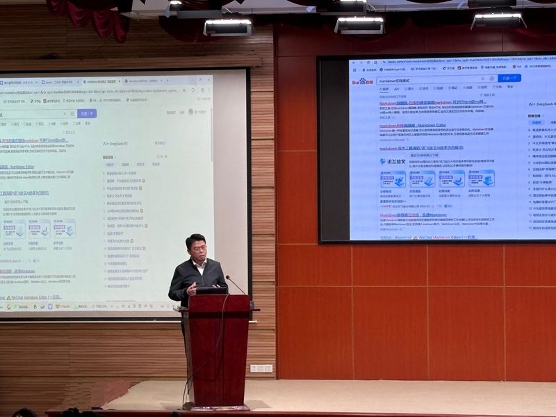 会议由人事处处长李刚主持,特别邀请了万象城四位教师展开深度解析。李函奕围绕生成式人工智能在外语教学中的应用,聚焦批判性思维培养,通过演示POA导向法优化指令语,结合DeepSeek、Sider插件等多工具实现灵感激发与教学小游戏设计。黄学军通过梳理AI发展历程与教育赋能路径,对“为什么要掌握AI”“怎么科学使用AI”“AI的科学禁区在何处”三个核心问题进行解读。刘茜结合行业案例,分享AI和人工智能在跨境电商中的应用,详解PPT、短视频和数字人智能生成技巧,强调以长期主义拥抱智能时代。易博通过现场演示,详解AI处理复杂文档的全流程自动化方法,为高效备课和行政提效提供新范式。