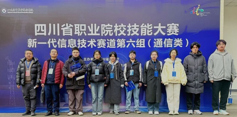 1月23日,四川省职业院校技能大赛新一代信息技术赛项第六组赛事在四川邮电职业技术学院圆满举办。万象城信息技术系依托信息安全技术应用、云计算技术应用两大专业优势,组建两支参赛队伍出征信息通讯工程与网络运维项目,凭借扎实的专业功底和出色的实战能力斩获佳绩:由蒋佳佳、李青、莫洛尔的、胡顺田组成的团队荣获 C 组银奖,由赵梦玲、黄琳岚、刘海川、邵思博组成的团队斩获铜奖。