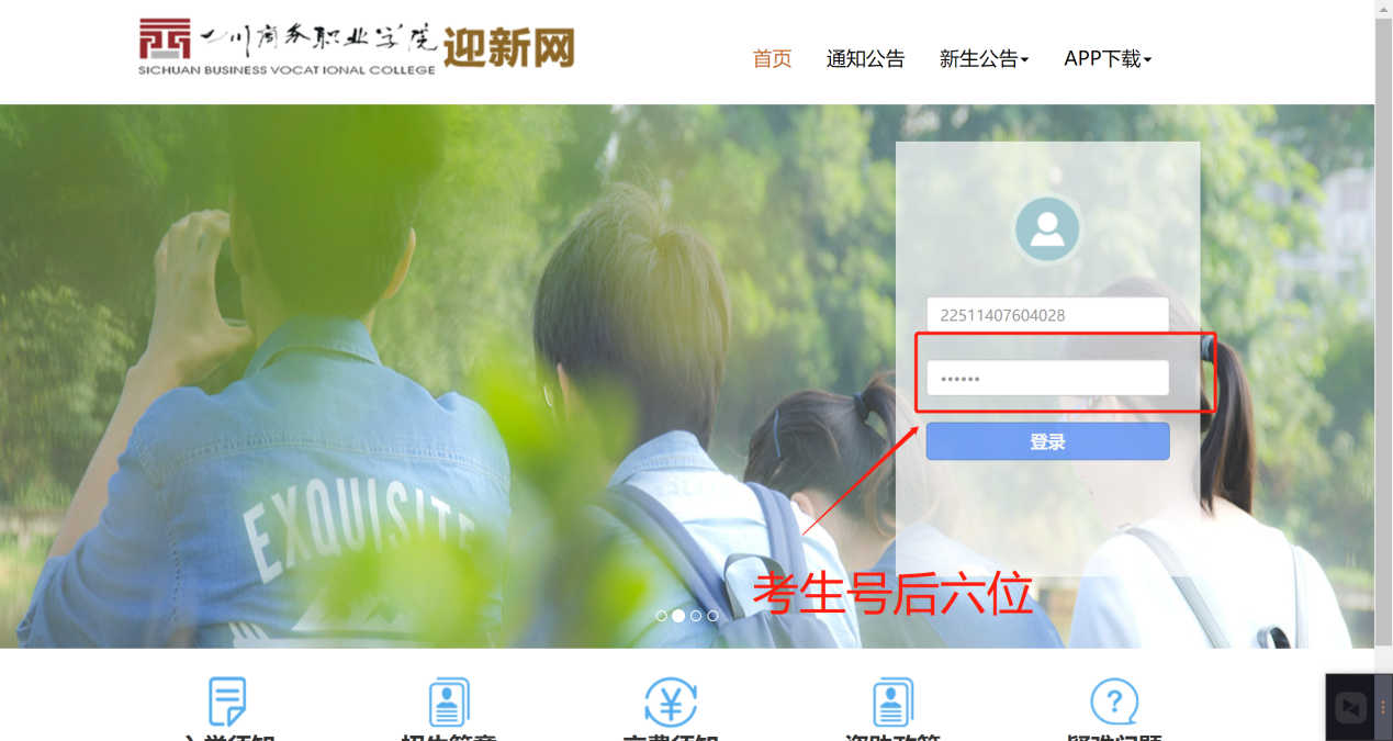 1、进入网址,登录账号:考生号; 密码:考生号后六位,鼠标点击登录。