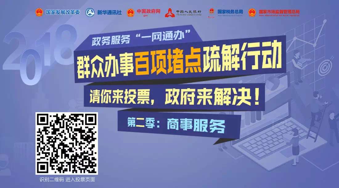 5月25日起,国家发展改革委、新华社、中国政府网联合中国人民银行、国家税务总局、国家市场监督管理总局发起第二季堵点问题征集活动,聚焦商事服务领域办事堵点问题。请结合自身所遇到的涉及营业执照、纳税证明等方面的“奇葩证明”,以及为开证明往返多地的经历填写问卷。所征集的信息经大数据分析后,我们将选择群众反映最强烈的20个“堵点”问题,推动有关地方、部门限时解决。