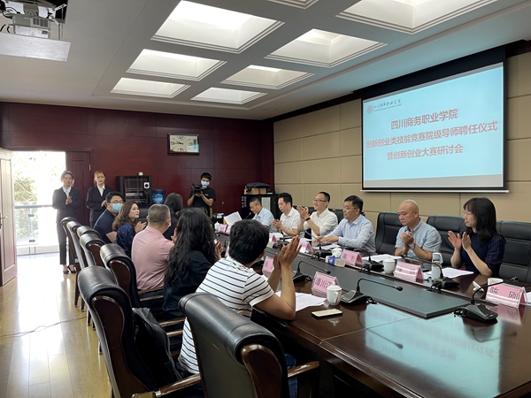 西南财经大学金融学院党委副书记黄文代表专业导师介绍了创新创业大赛对于职业院校的重要意义,希望学院能够将大赛项目辅导融入到课程教学体系中,通过项目专业指导,带领更多的专业团队参与到创新创业大赛中。