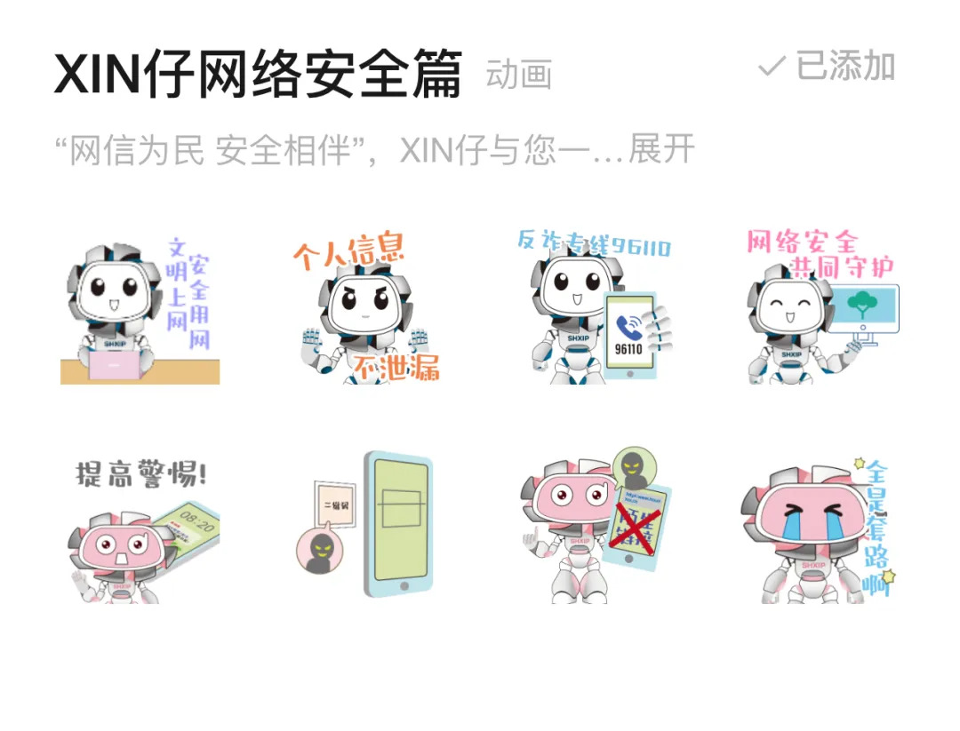 除此之外,“上海市莘庄工业区”微信公众号的形象大使——“XIN仔”表情包网络安全篇也上线啦!一起和XIN仔维护网络安全,营造文明网络环境!