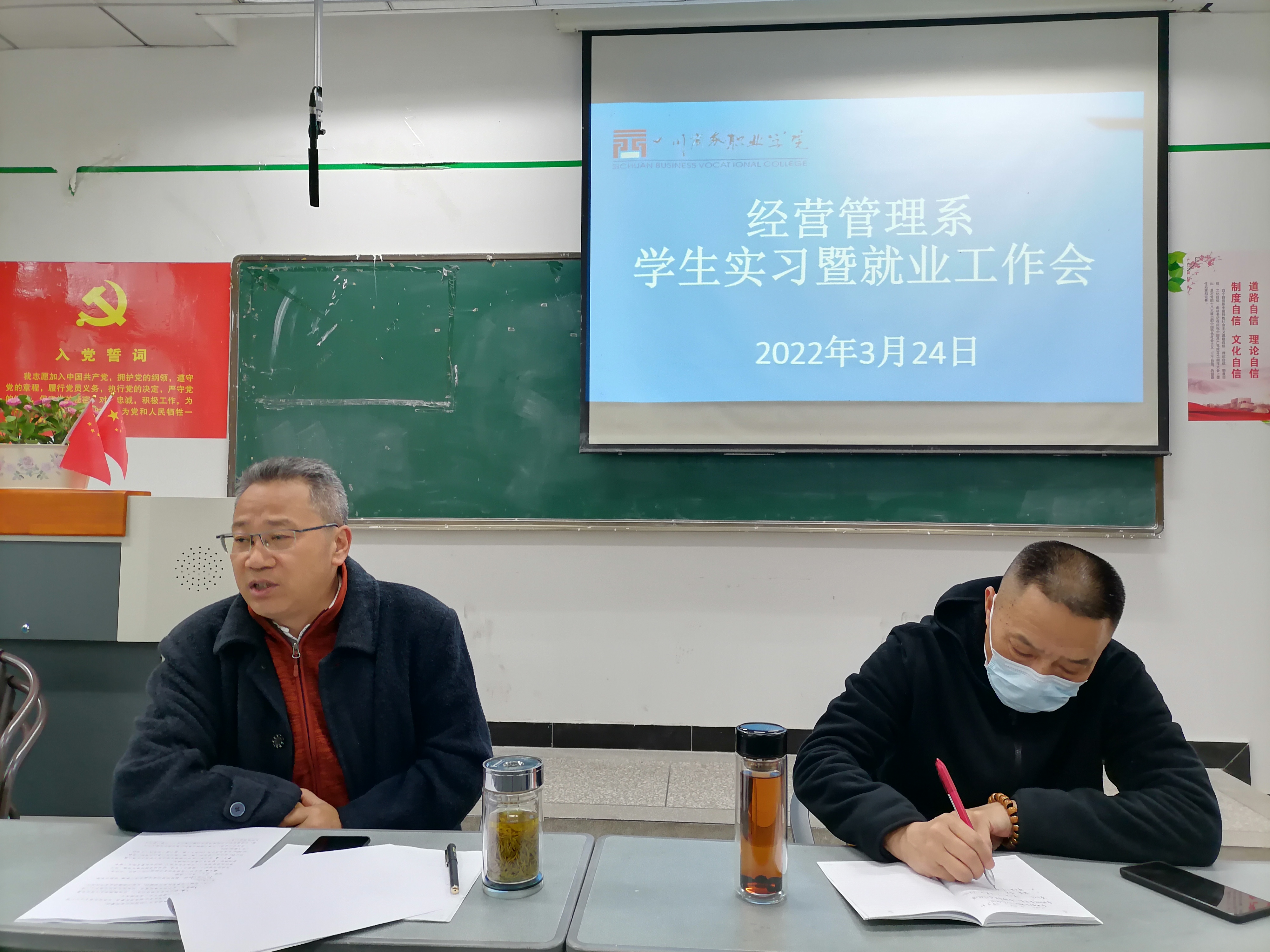 2022年3月24日上午9时,经营管理系于第一教学楼202室召开学生实习暨毕业生工作会会议。出席本次会议的有经管系主任梁栋、系党总支书记张一风、系副主任王琦、系党政办主任朱永泉、各专业负责人、全体辅导员、行政人员...